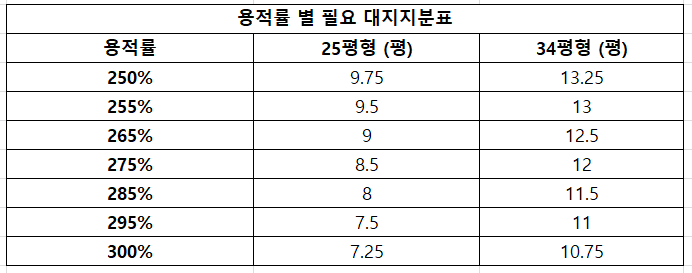 용적률은 건축물의 총 바닥 면적과 대지 면적의 비율을 의미합니다. 구운삼환아파트의 경우, 용적률에 따라 필요한 대지지분이 달라지며, 이는 분담금 산정에 큰 영향을 미칩니다.