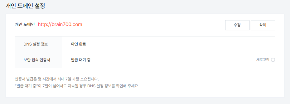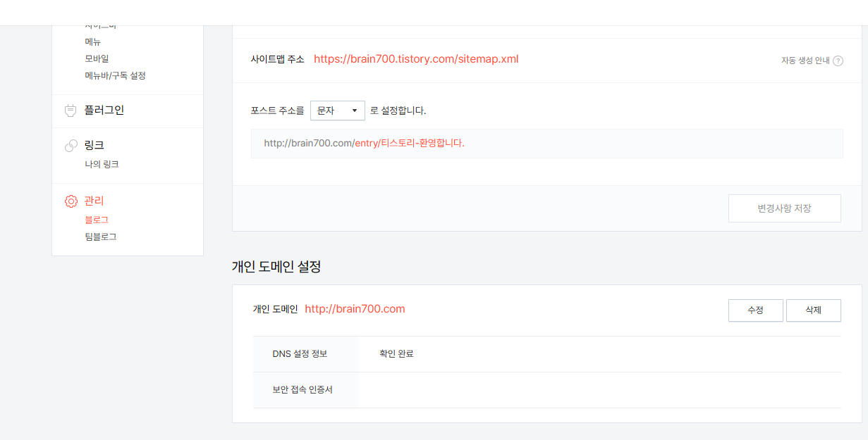 티스토리에서 개인도메인 설정을 다시 해볼까???