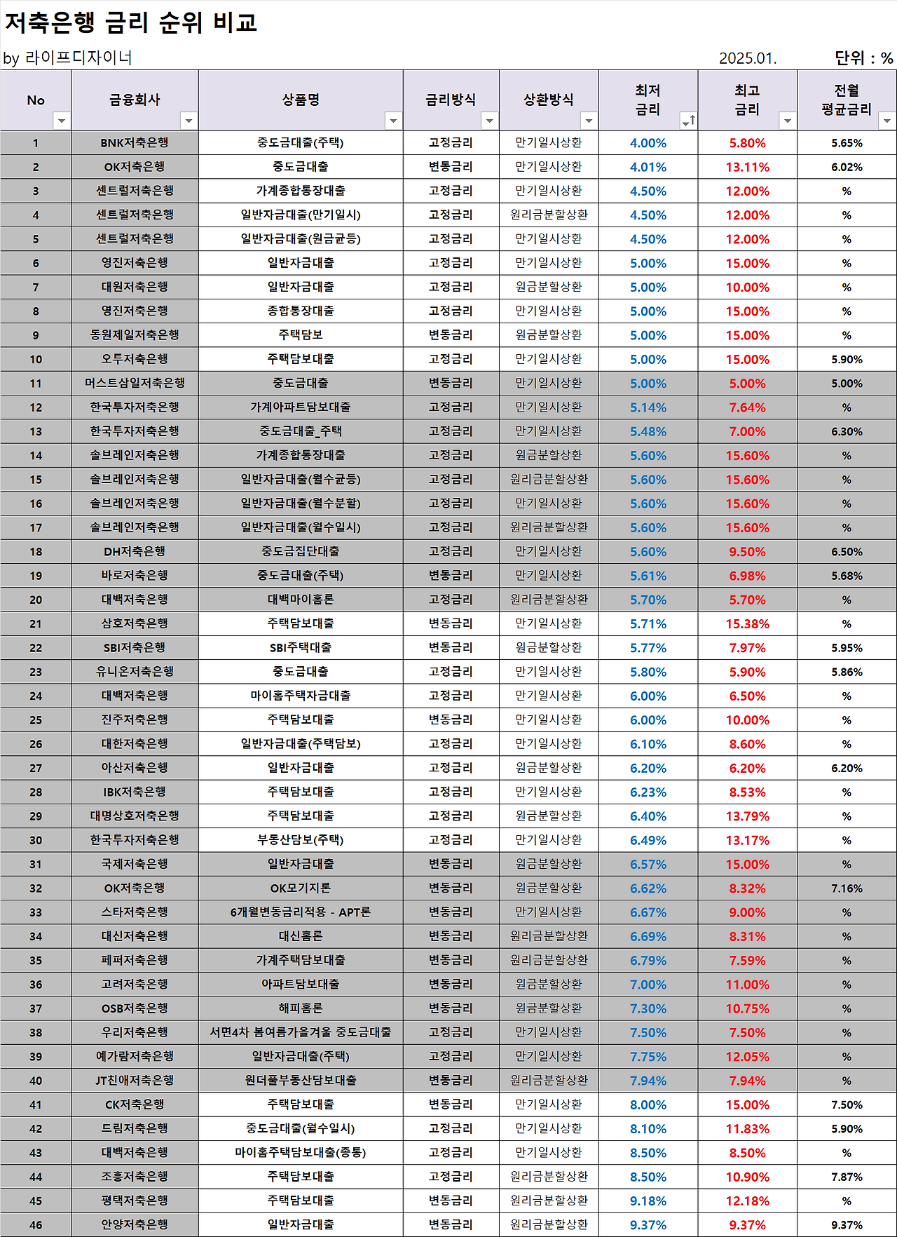 2025년 주택담보대출 금리 현황