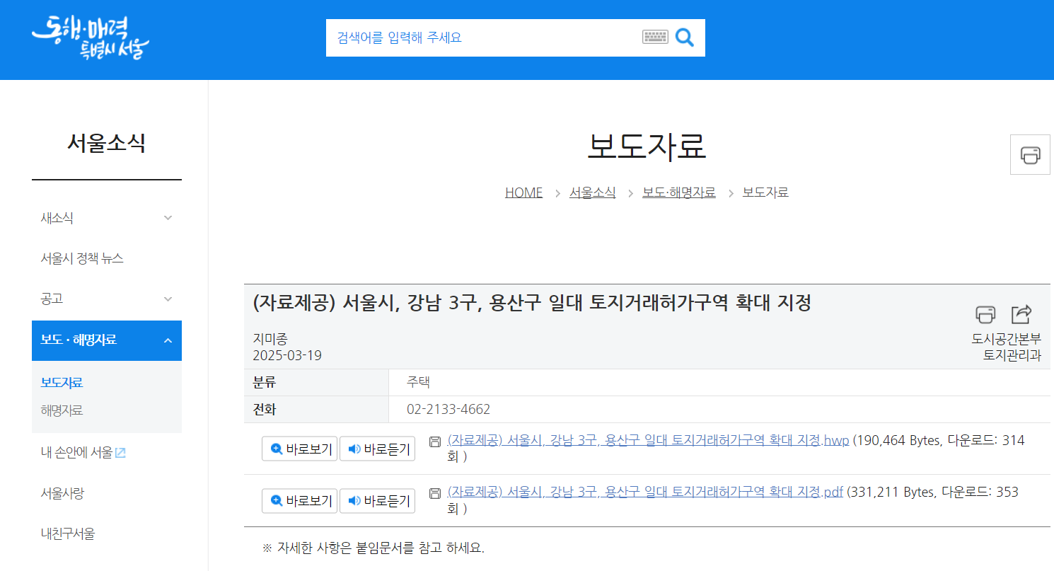 2025년 3월, 서울시와 국토교통부는 강남 3구(강남구, 서초구, 송파구)와 용산구를 포함한 일부 지역을 토지거래허가구역으로 재지정했습니다. 이는 부동산 시장의 과열을 방지하고 투기성 거래를 억제하기 위한 조치입니다. 주요 내용은 다음과 같습니다